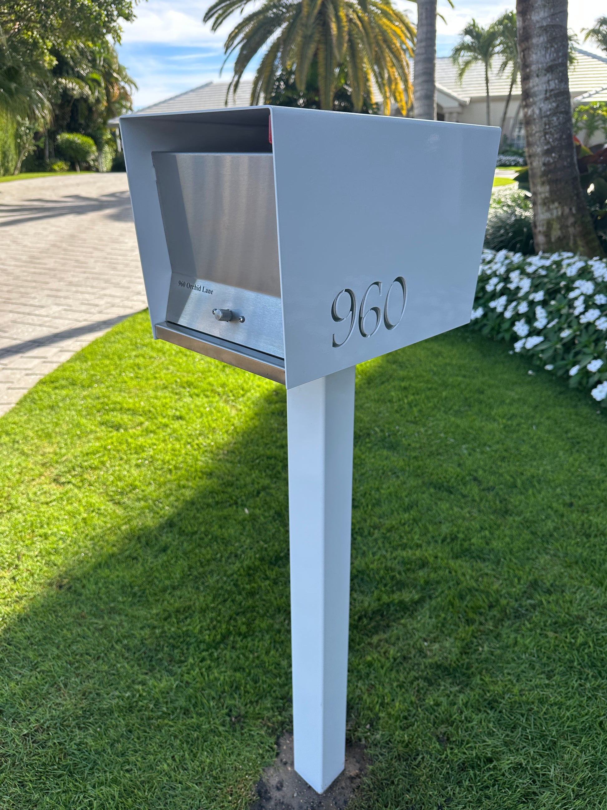 Made from .125” 5052-H32 aluminum, each mailbox is powder-coated with marine-grade paint for durability in any climate. The base is constructed from 18-gauge #4 finish stainless steel, and the custom anodized doors and number backings add a refined touch.