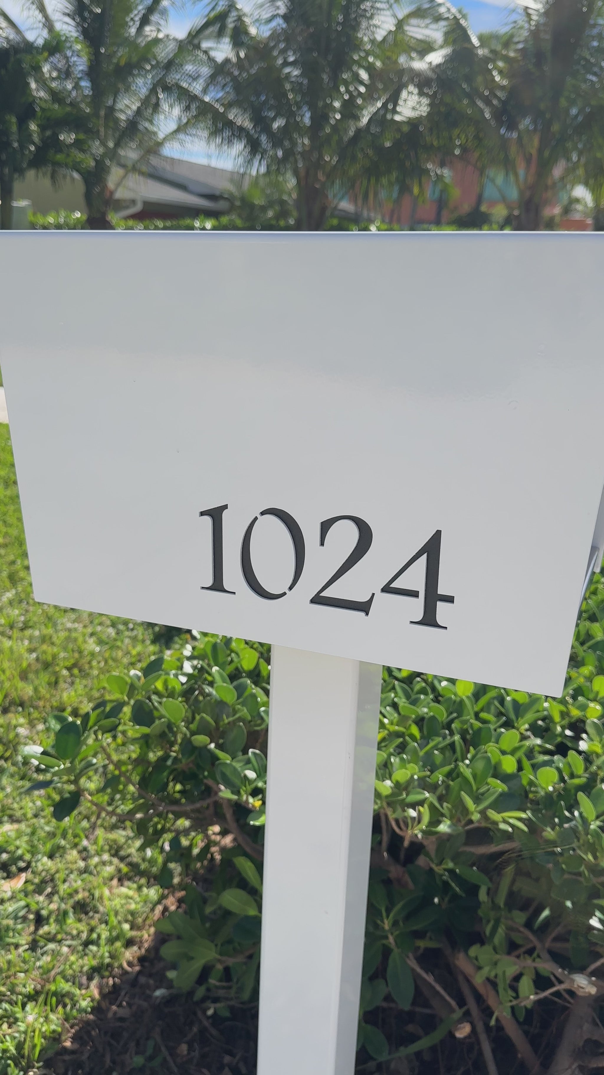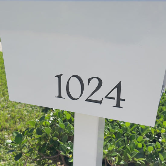 Custom laser-cut address numbers on the sides