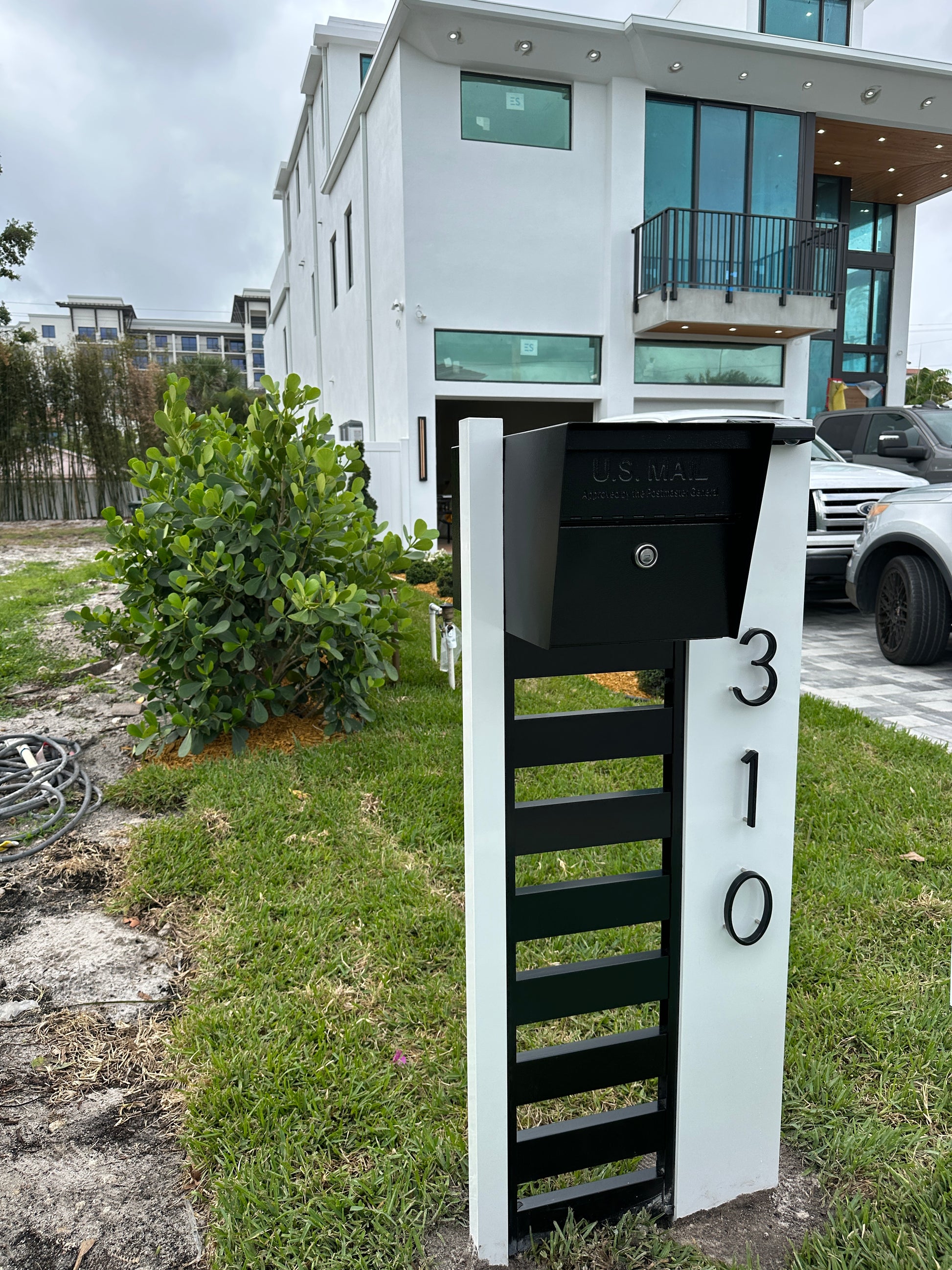 Designed for durability and modern curb appeal, this mailbox setup features a powder-coated aluminum base paired with an optional locking or non-locking steel mailbox. It includes bold 5" house numbers for visibility and a built-in solar light to keep your address illuminated at night—combining style, function, and safety in one complete package.
