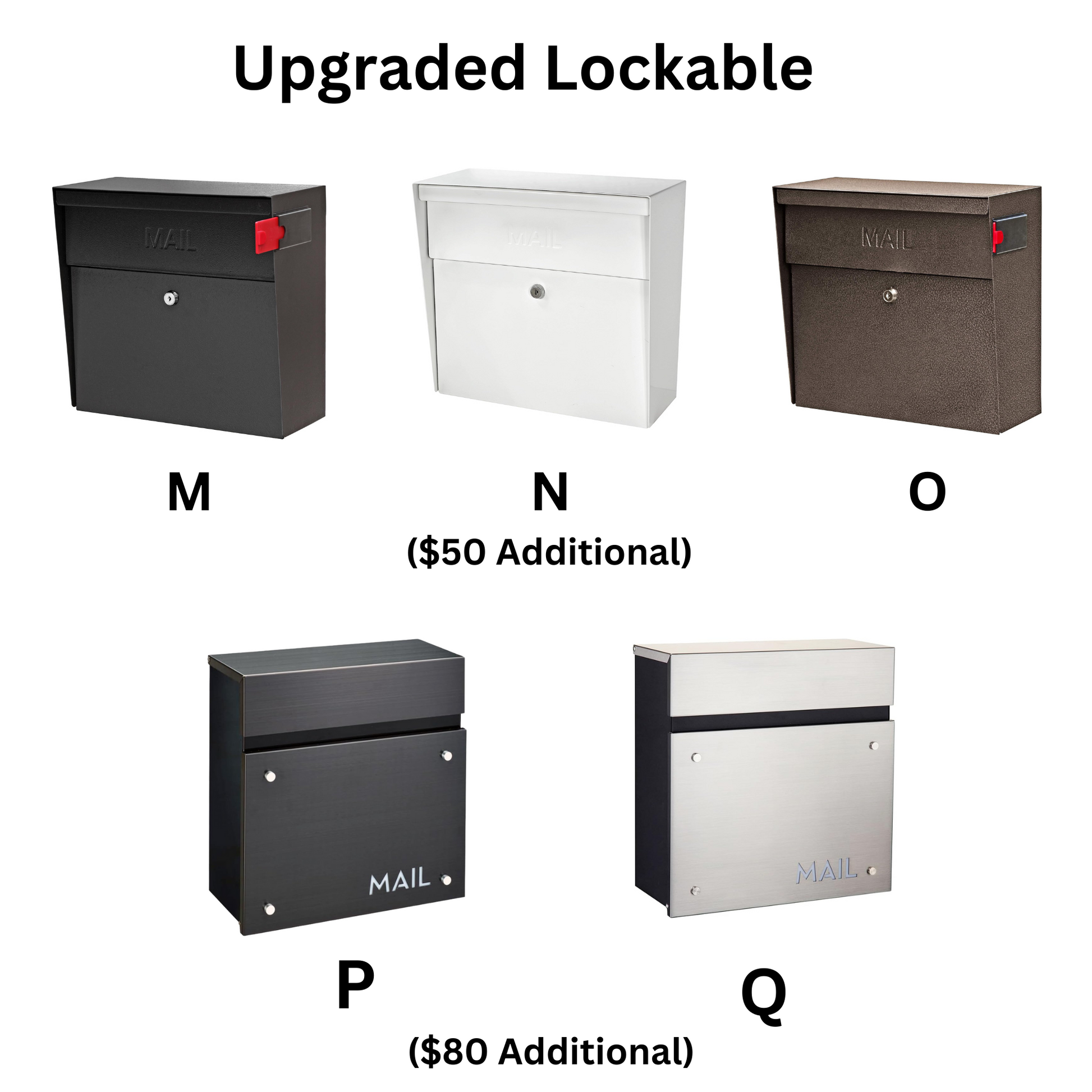 Choose between a lockable or non-locking powder-coated steel mailbox, both designed for long-lasting performance and a sleek, modern finish.