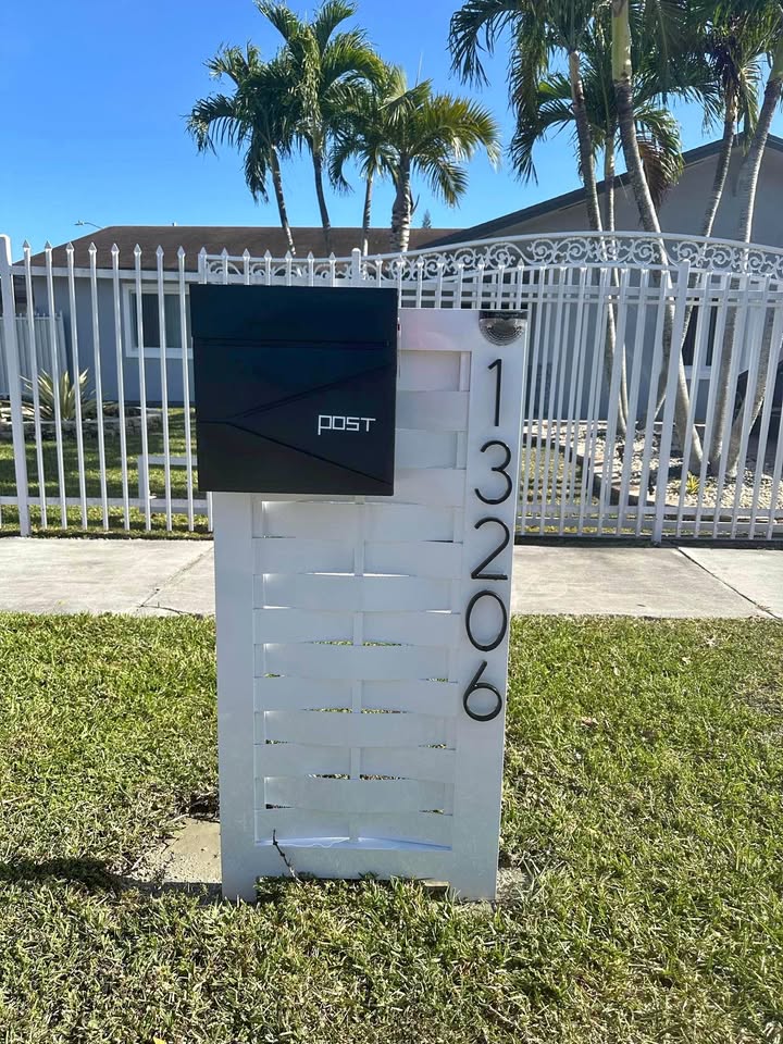 Designed for durability and modern curb appeal, this mailbox setup features a powder-coated aluminum base paired with a secure, lockable steel mailbox. It includes bold 5" house numbers for visibility and a built-in solar light to keep your address illuminated at night—combining style, function, and safety in one complete package.